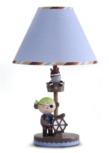 KidsLine 2506BS, Light up your nursery with this hand-painted resin lamp base featuring Kids Line's zebra pirate on the look out and pirate monkey at the helm of the ship. Topped off with a light blue flared lampshade with stripe trim. The lamp also includes an on/off in-line switch, an EVA protection bottom, is UL/CSA certified. Height of lamp is 16" x 10". Lamp coordinates with the Kids Line Pirate Party bedding collection (sold separately).