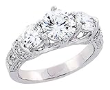 Double Accent rcj110, This beautiful 14K White Gold Rhodium Plated Sterling Silver Wedding & Engagement Ring Sterling Silver Vintage Style ThreeStone Engagement Ring w/ Rhodium Plating, w/ two 5mm (.50 Carat each) & one 7mm (1.25 Carats) Brilliant Cut CZ Stones For Women 9MM ( Size 6 to 9) by Double Accent is meticulously crafted in gleaming and durable Sterling Silver. ...
